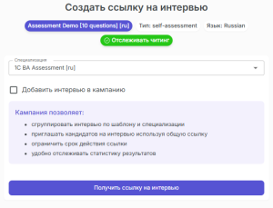 The Interview Templates (Interview Templates) section is the central library of all available templates. A template is a ready-made set of questions and parameters for an interview of a specific type and specialization.