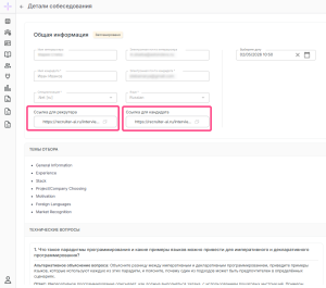 Interview Language (Interview Language) | Template language, for example RU, EN, DE |