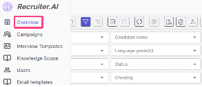 The Overview section (Overview) is the central dashboard for viewing, searching, and managing all interviews related to your organization.