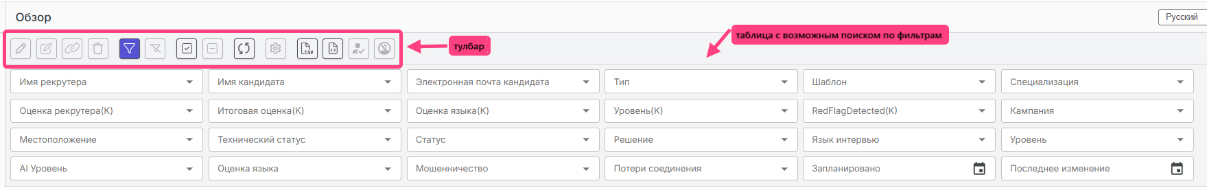 Filters help you quickly find the required interviews among a large number of records.