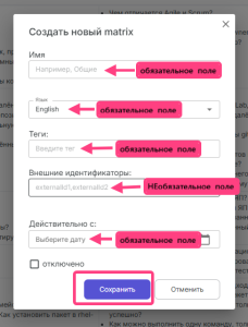 Name (Name) | Matrix name, for example Python (ML) or React Assessment Demo P2P. |