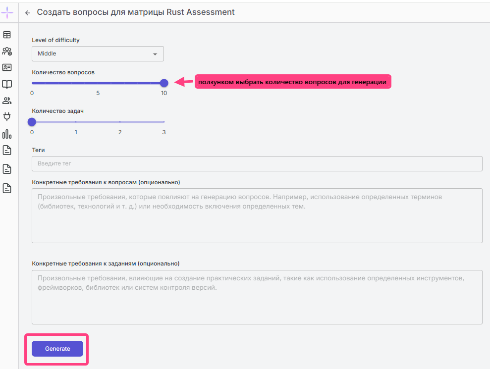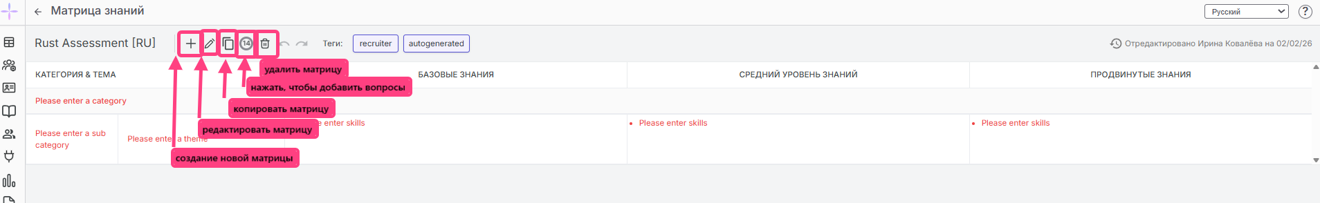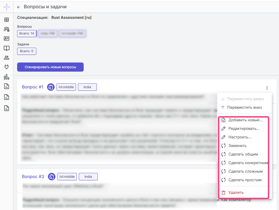 Important: a correctly configured knowledge matrix with properly assigned tags ensures accurate matching of questions to the candidate's specialization and directly affects interview quality.