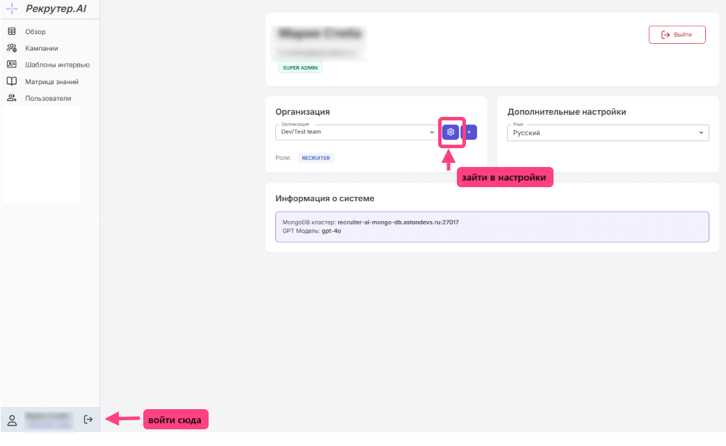 For full setup, open the Organization or Organization settings section. It is usually available through the profile menu or the gear icon.