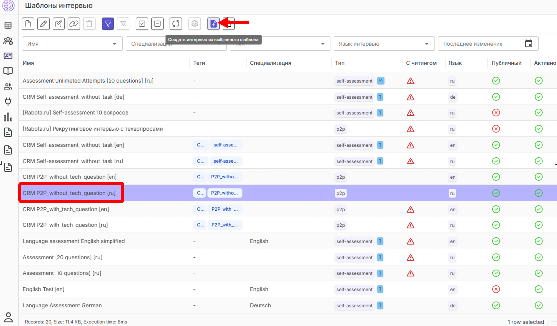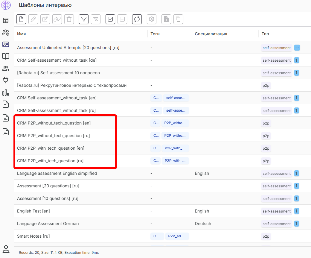 P2P interviews allow you to organize a live video interview between a recruiter and a candidate in real time. The system automatically builds the interview structure based on the selected template and may include technical questions.