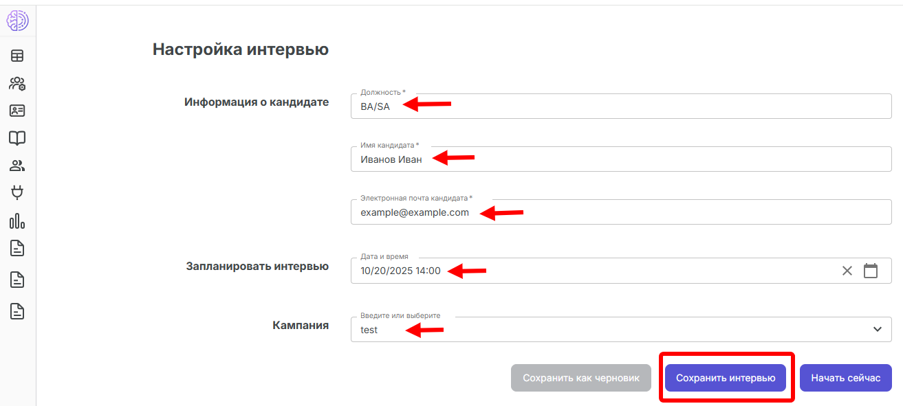 Interviews of this type can also be created through the Campaigns section if you need to organize mass interviewing of candidates using a shared link.