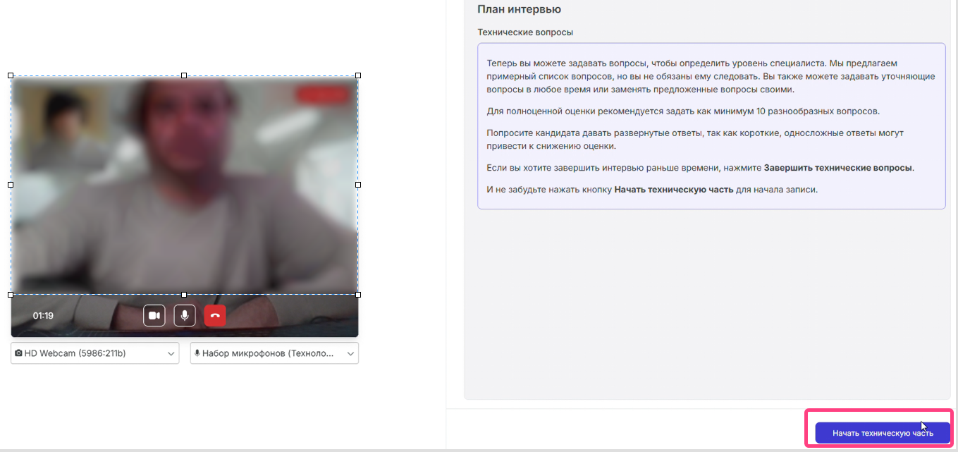 Before starting the interview, make sure the camera, microphone, and headphones are working properly, and that the candidate has already received their link.