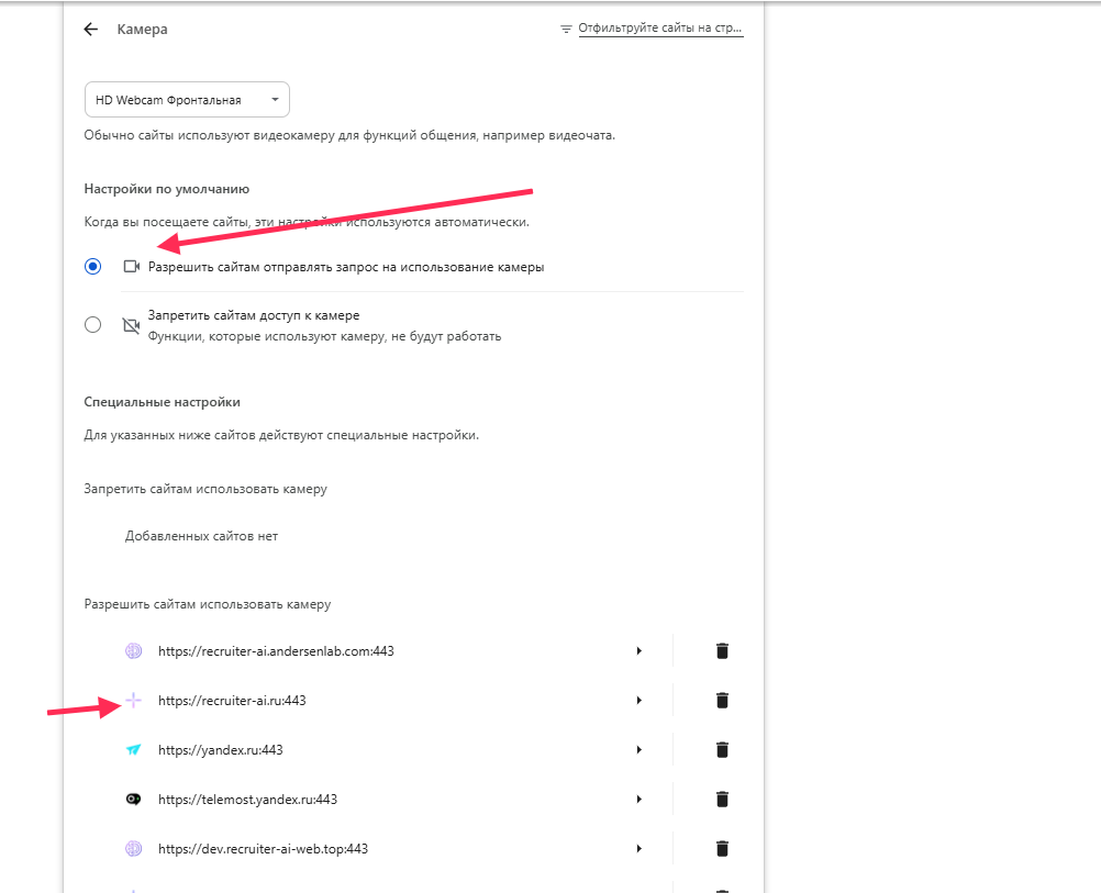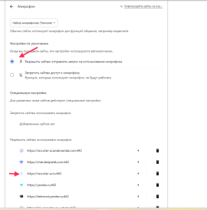 - If the required site, for example, recruiter-ai.ru, is in the blocked list, click the trash icon next to it.