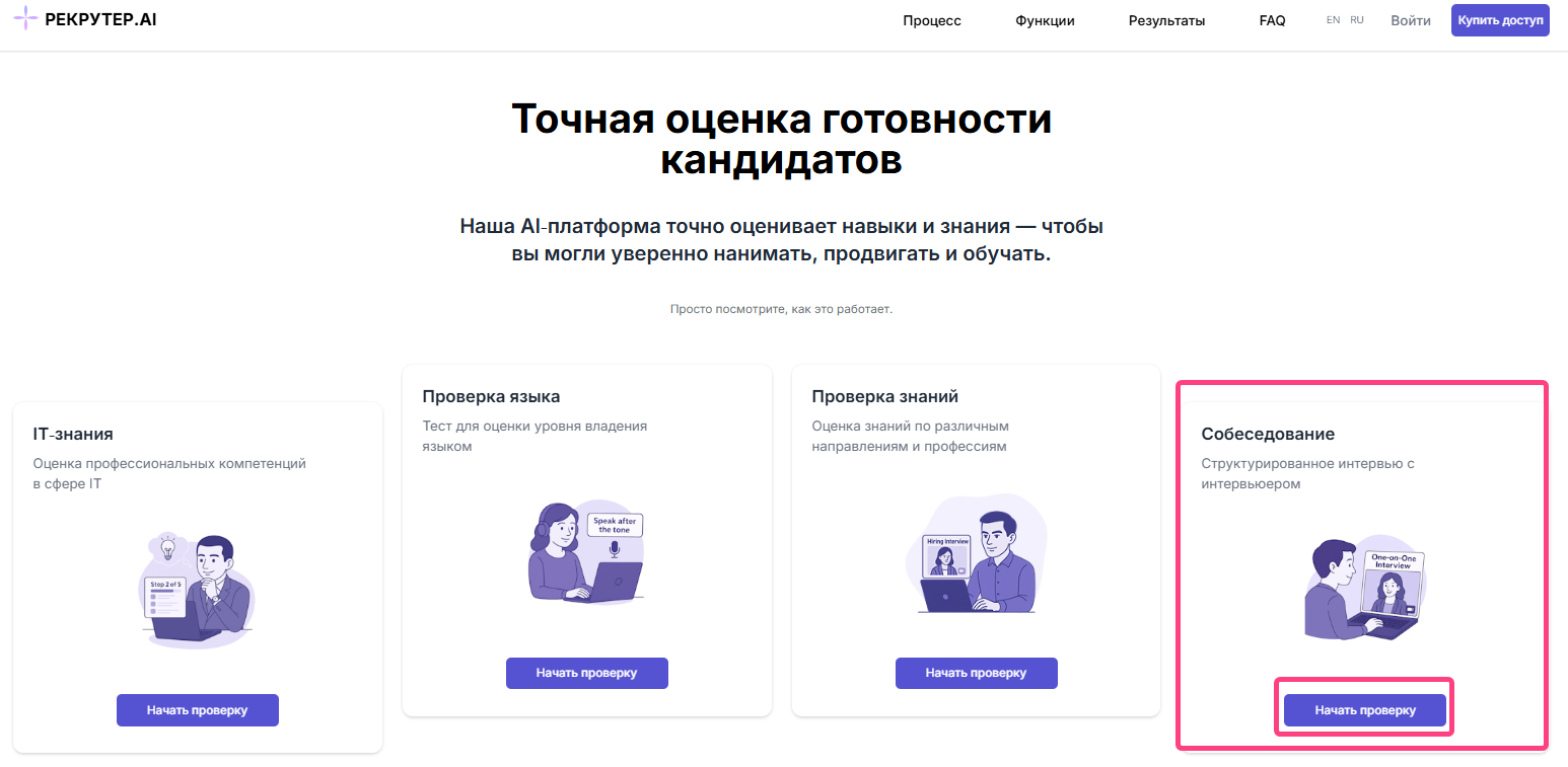 If you want not only to complete self-assessments, but also to conduct interviews with candidates, create campaigns, and manage the hiring process, you need to register in the system as a recruiter.