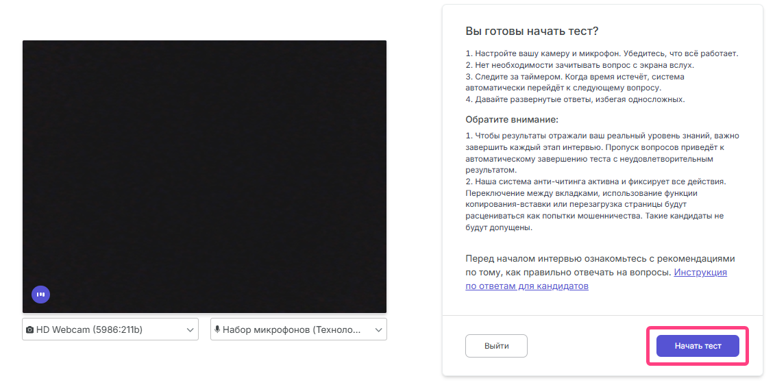 - Important: to get a result, you need to answer all questions. Skipping questions will lead to an unsatisfactory result.